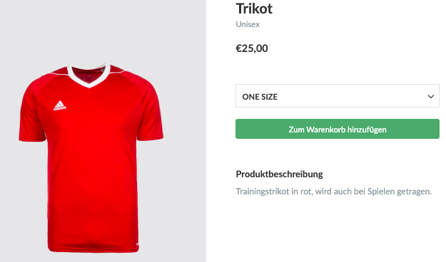 - Wähle die Größe und den Namensaufdruck aus und klicke auf den grünen Button Zum Warenkorb hinzufügen