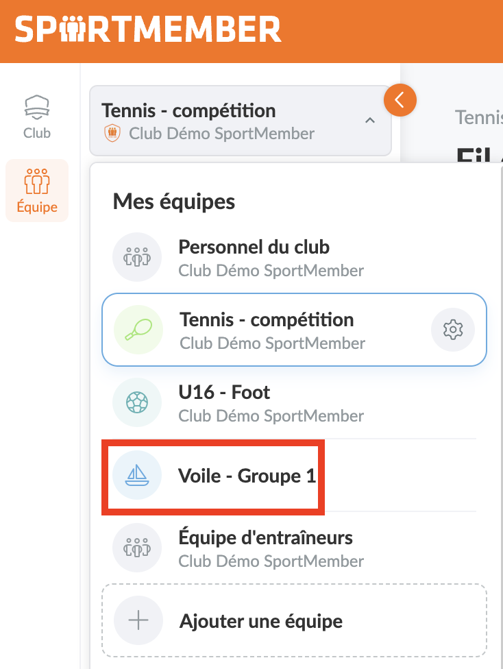 Vous pouvez maintenant passer d'un club à l'autre via le menu déroulant dans le niveau Club !