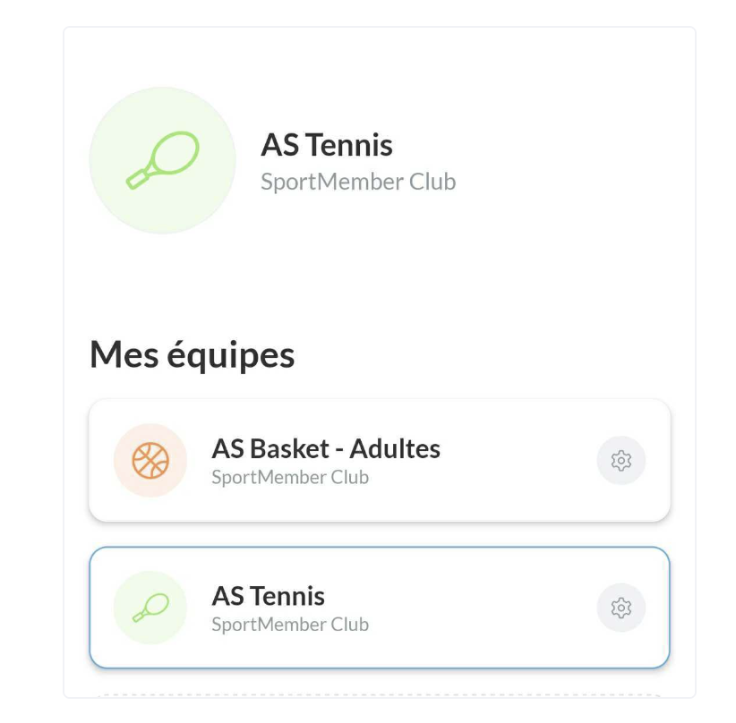- Basculez entre les équipes/les calendriers sur l'application SportMember si vous êtes membre de plusieurs équipes.